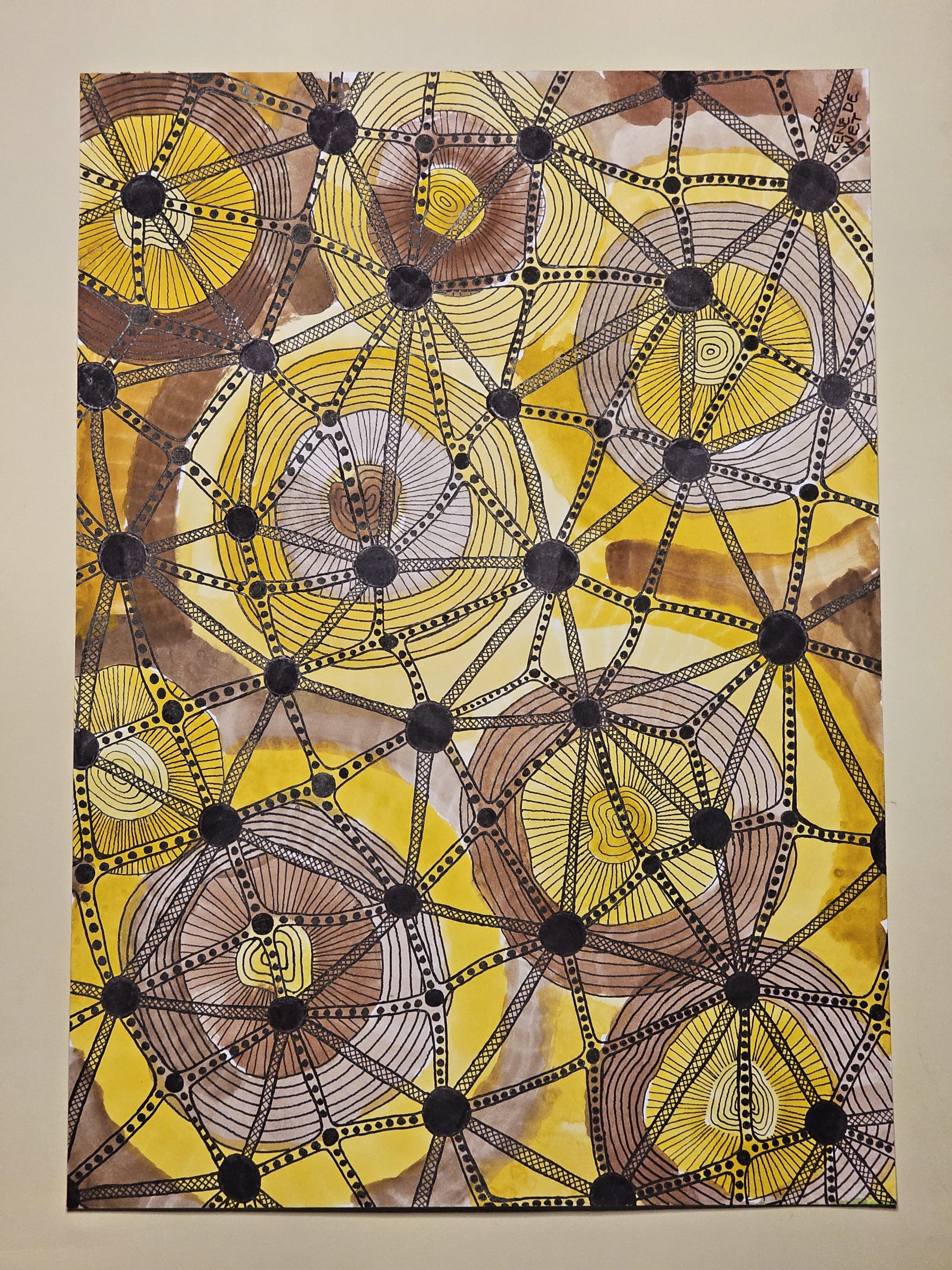 A3 Fineliner and watercolour on Fabriano paper and professionally blocked, by Rene de Wet.