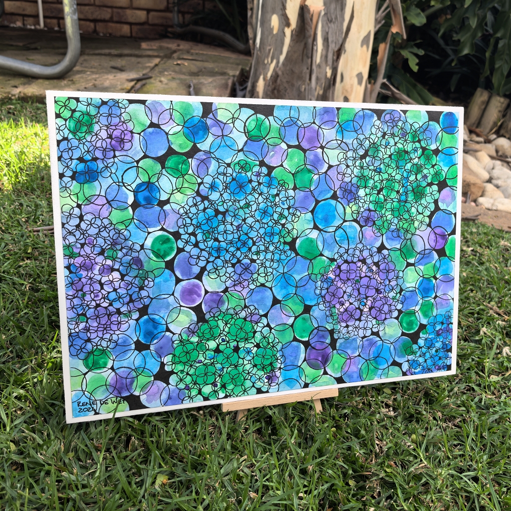 A3 Finelener and watercolour on Fabriano paper and professionally blocked, by Rene de Wet.